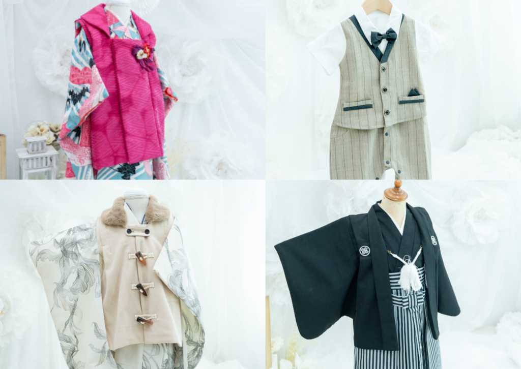 お子様の雰囲気やご希望に合わせて、お選びいただけます。また、お持ち込みの衣装での撮影も大歓迎です!