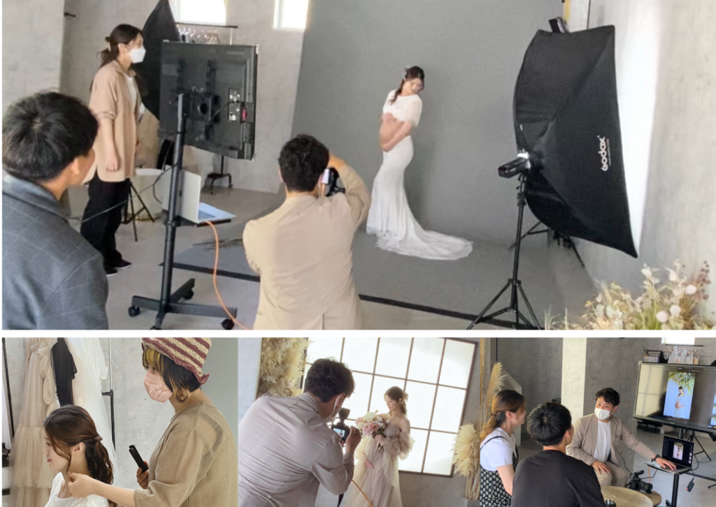 手の位置や足の位置は?初めての撮影では戸惑ったりしますよね。お客様がより美しく映るようにお腹の向き、顎の位置、手を添える位置などスタッフが適切に誘導して整えてまいります。
