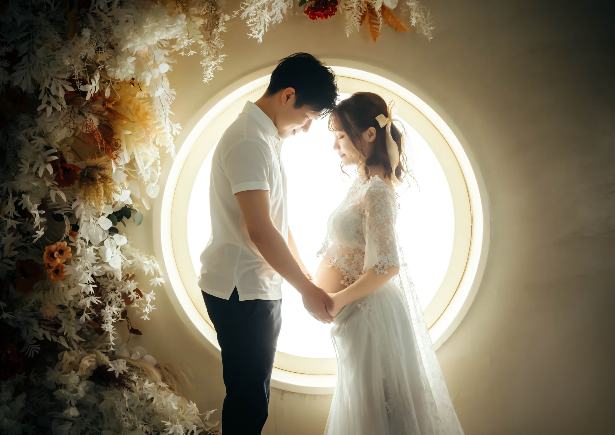 マタニティさんなら韓国ドレスやマタニティ用にウェディングドレスをご用意しております。